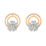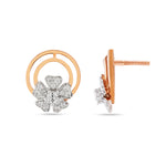 Graceful Sparkling Floral Petals Enclosed In Shimmering Circular Stud Earrings