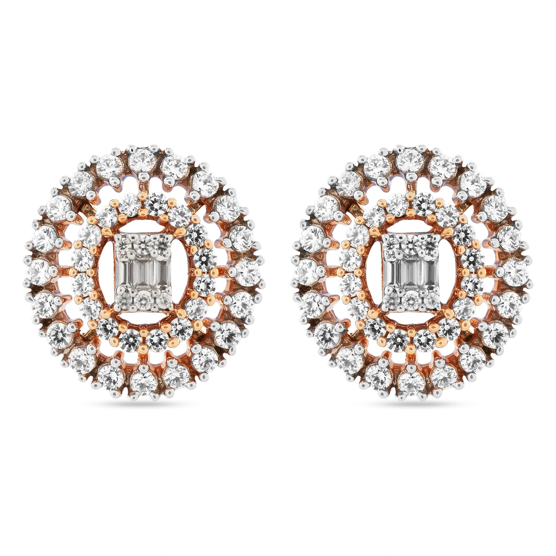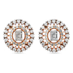 Exquisite Double Halo Circular Stud Earrings with Radiant Baguette Centers
