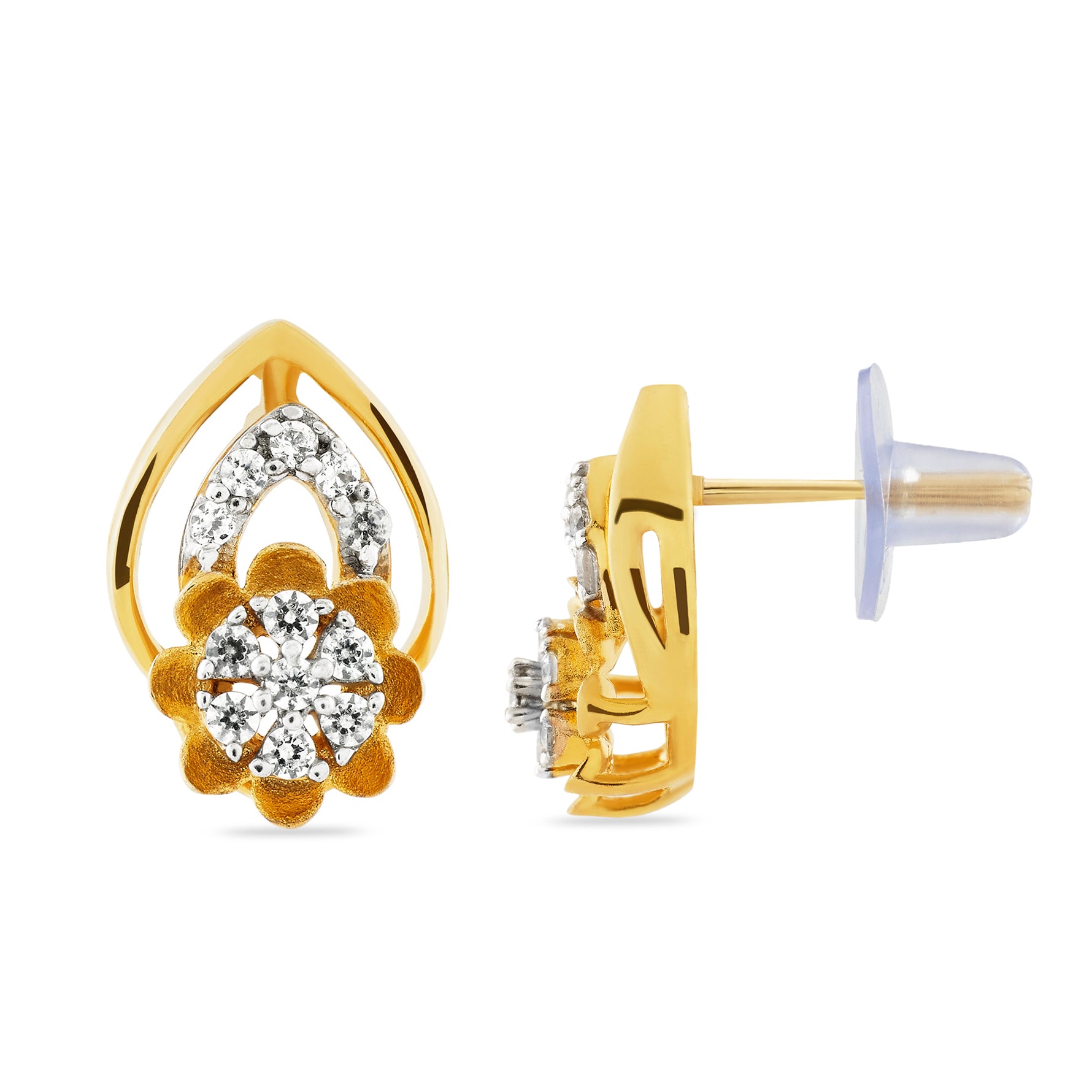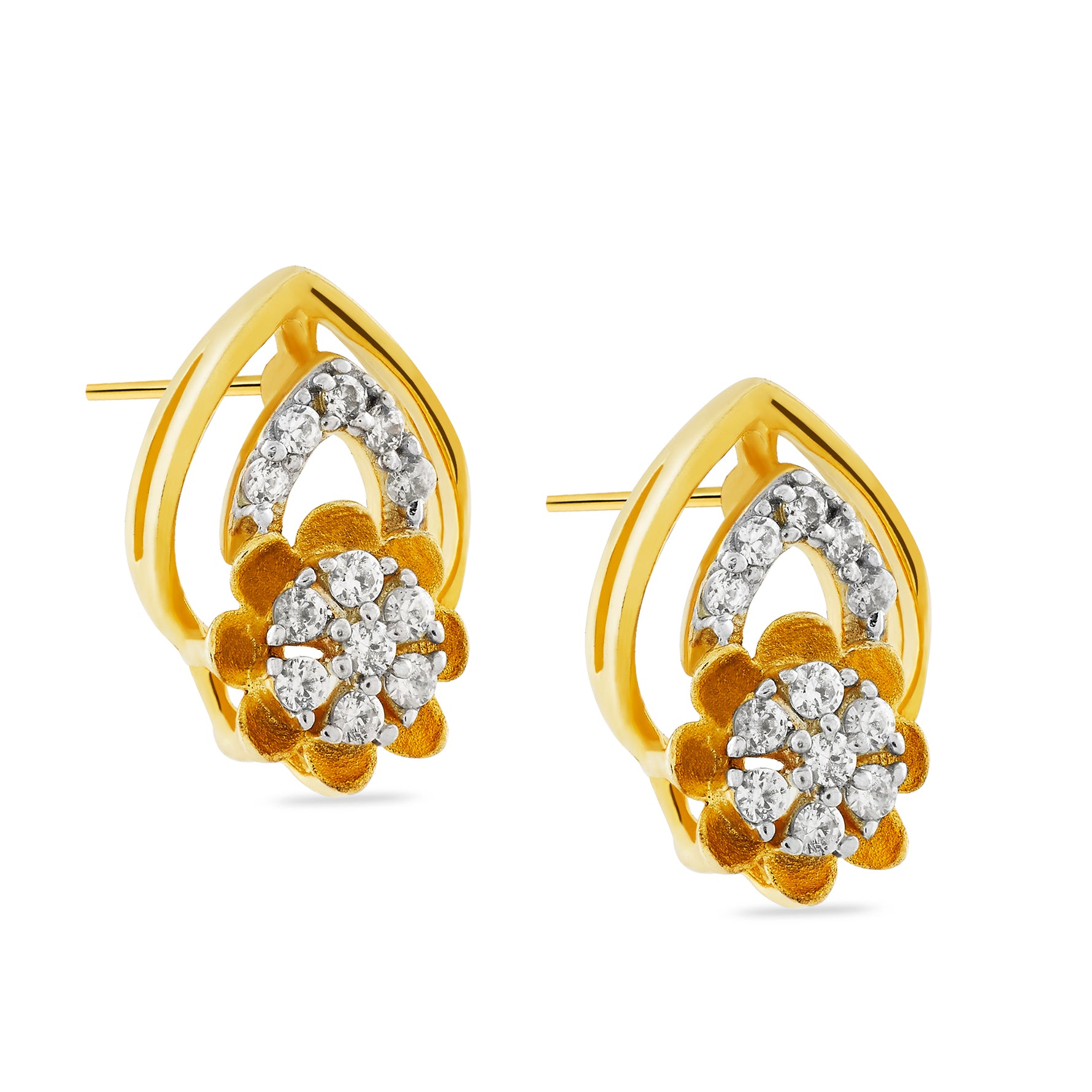 Embrace timeless femininity with these exquisite floral teardrop stud earrings. Featuring a delicate petal-inspired cluster set within a graceful open-frame silhouette, these earrings offer a sophisticated blend of classic artistry and modern charm. Perfectly proportioned for comfort, they add a touch of refined sparkle to any ensemble, day or night.