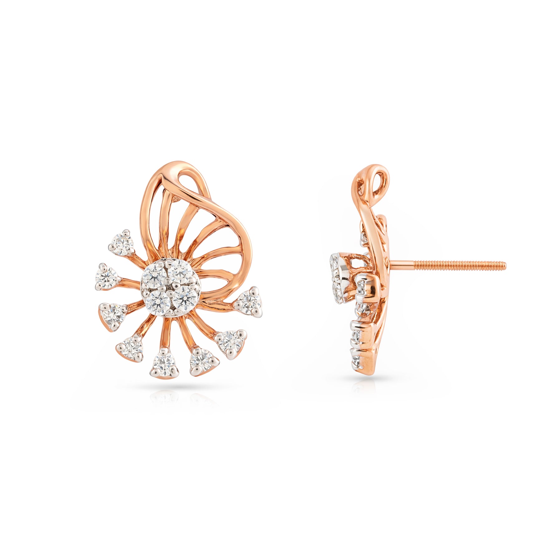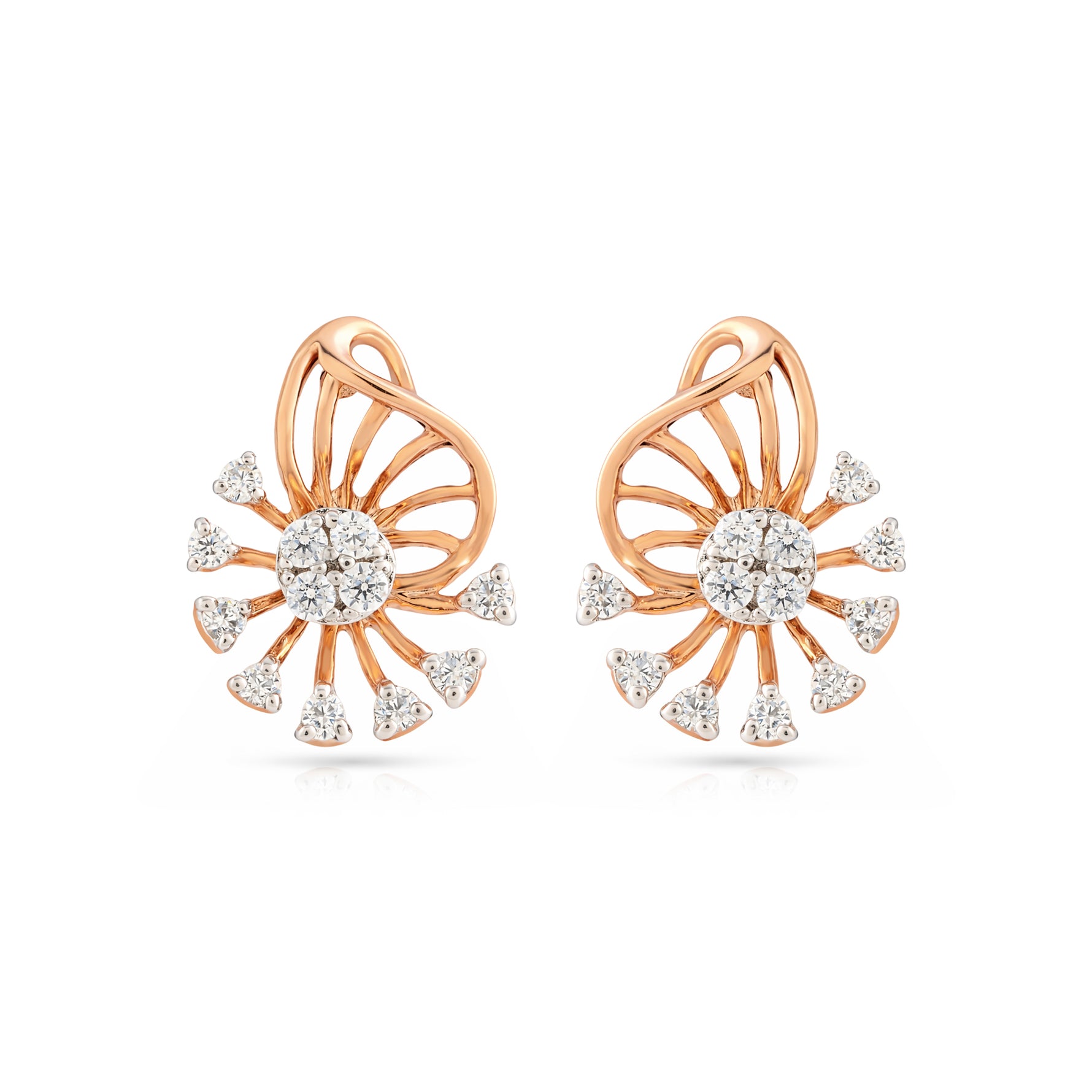 Embrace timeless charm with these exquisite floral-inspired stud earrings. Featuring a brilliant central cluster framed by delicate radiating petals, these earrings capture the essence of a blooming garden. Their intricate open-work design and shimmering accents create a sophisticated silhouette, perfect for adding a touch of graceful brilliance to any occasion.