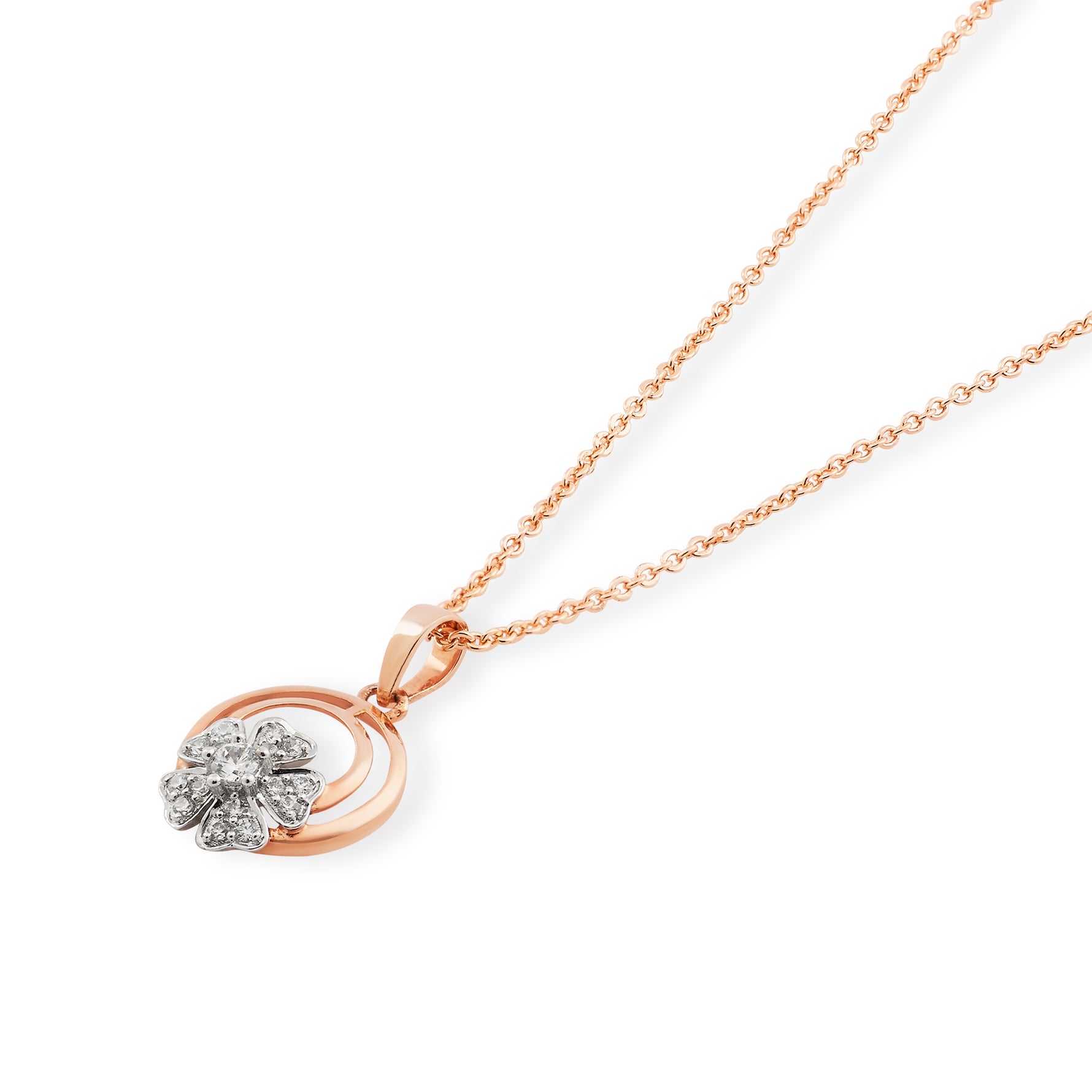 Embrace timeless femininity with this exquisite floral pendant, featuring a meticulously crafted five-petal blossom nestled within a sleek circular frame. Its minimalist yet sophisticated design offers a perfect balance of modern flair and classic charm, making it an essential accessory for adding a touch of radiance to any ensemble.