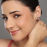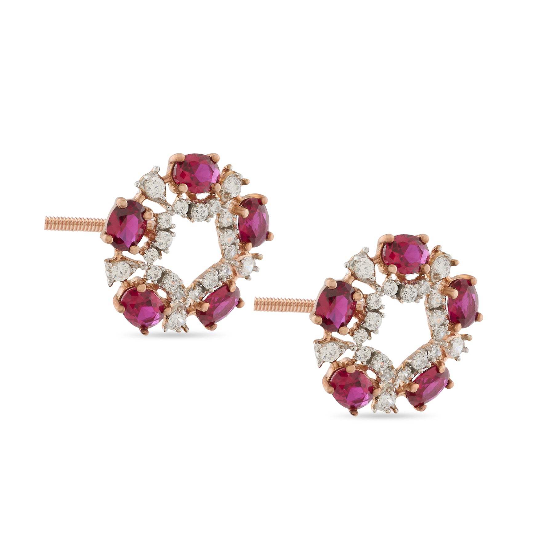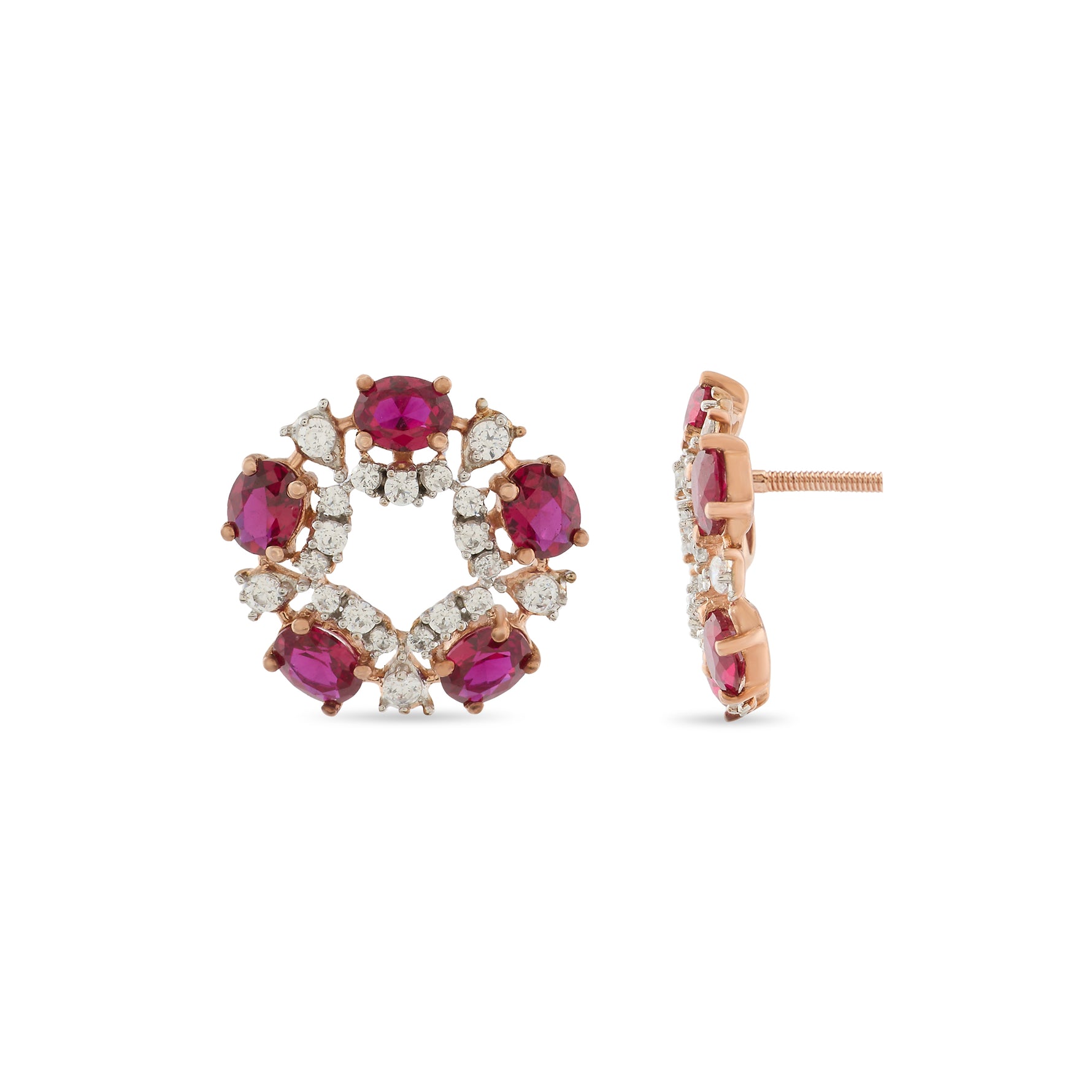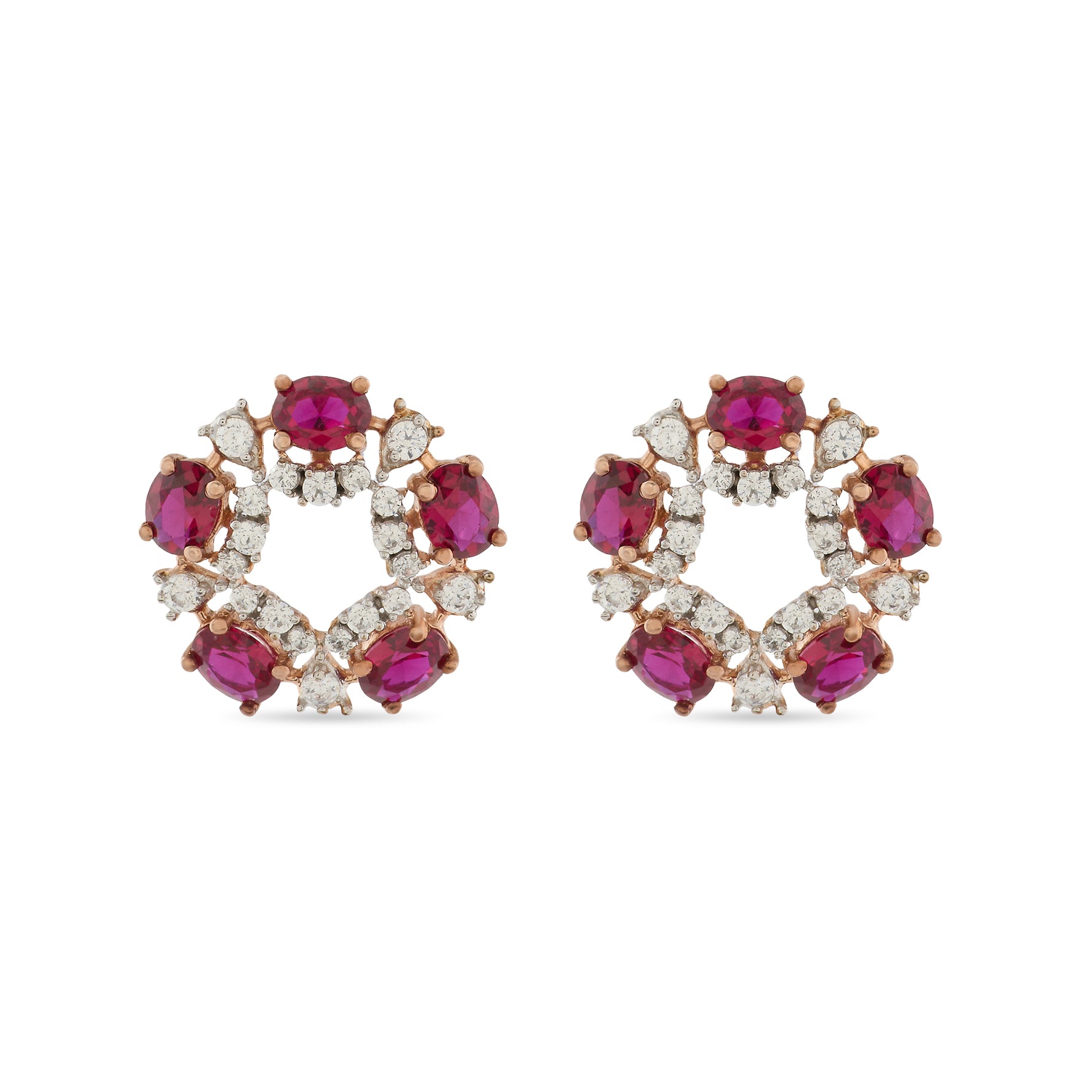 These refined stud earrings showcase a graceful floral circle design with a luminous open center. Intricately arranged accents create a balanced, elegant silhouette that feels both classic and celebratory. Perfect for weddings, festive gatherings, or elevated daily wear, they add charm, symmetry, and enduring sophistication.