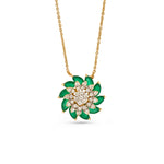 A graceful floral pendant inspired by blooming garden elegance. Layered petal forms surround a radiant clustered center, creating depth and refined symmetry. Suspended from a delicate chain, this piece offers effortless sophistication, making it ideal for festive moments, meaningful gifting, or elevated everyday styling.