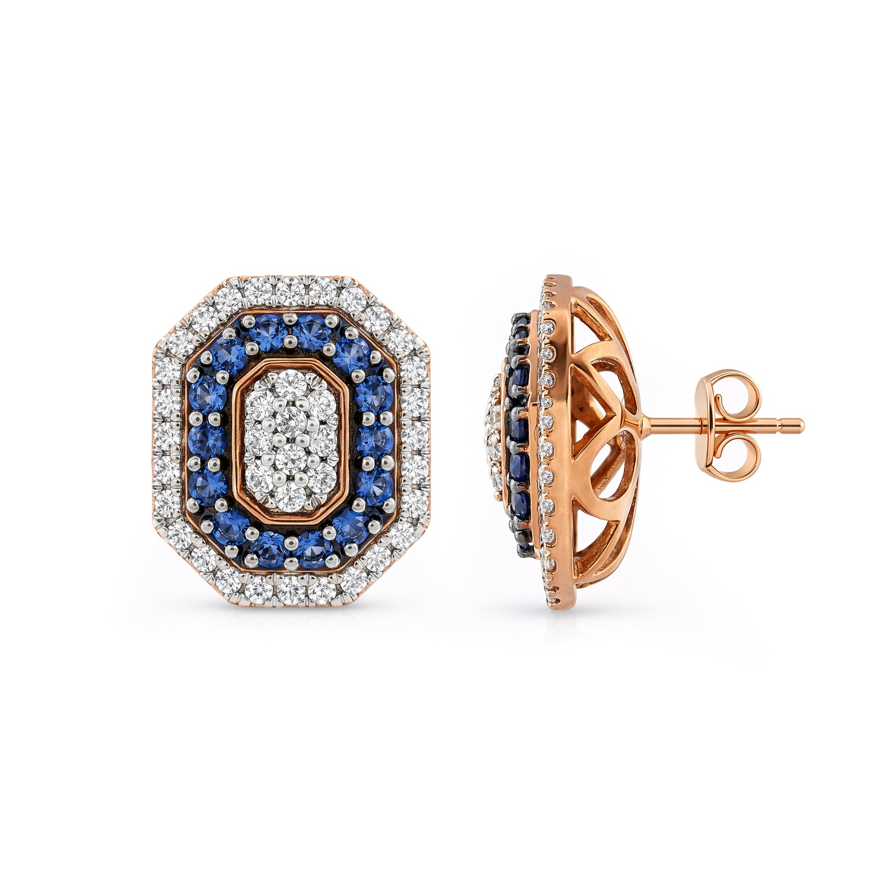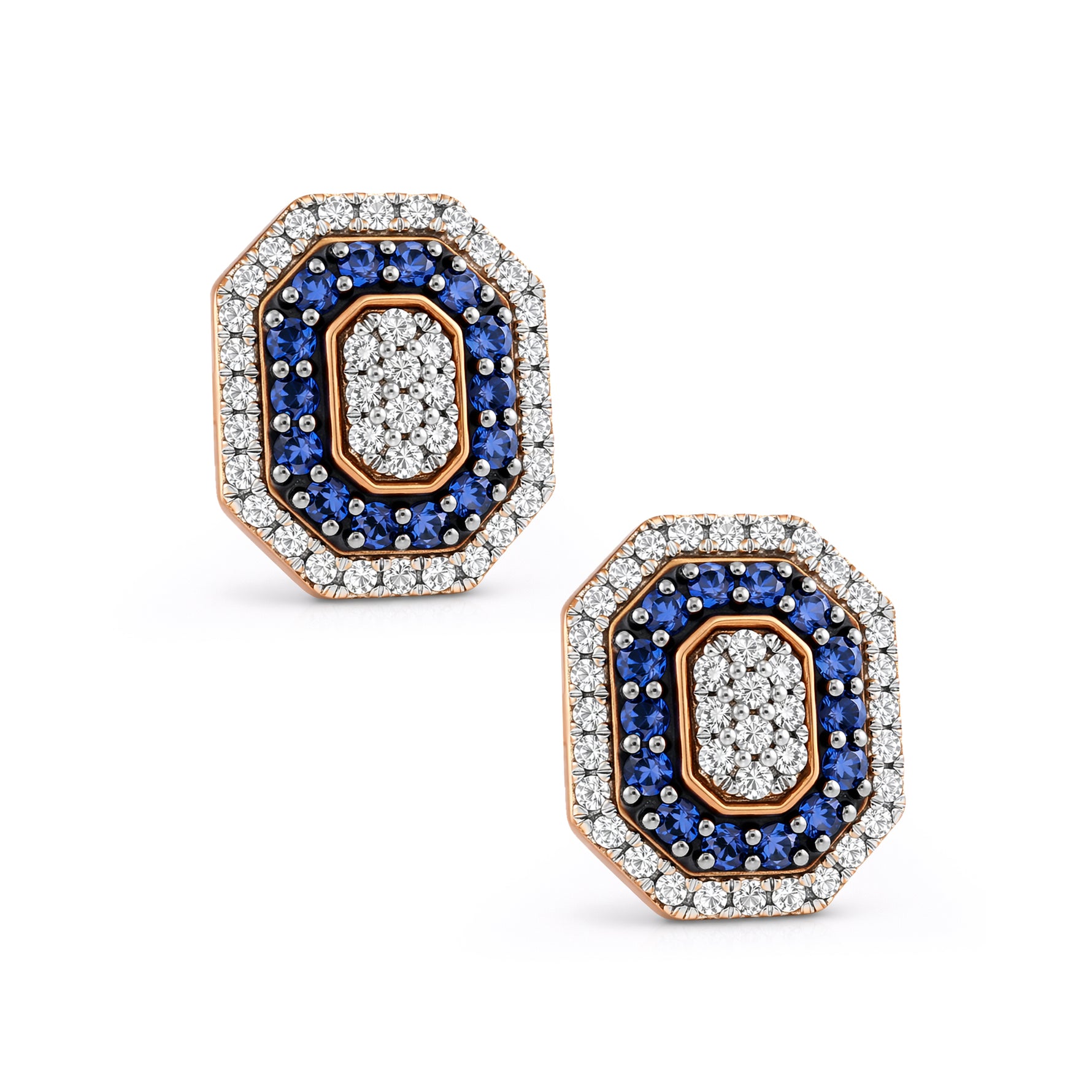 Elevate your style with these stunning octagonal stud earrings, featuring a sophisticated double-halo design. Meticulously set stones create a brilliant interplay of light, while the geometric silhouette adds a touch of modern luxury to a classic aesthetic. These versatile studs are the perfect statement of grace for any special occasion.