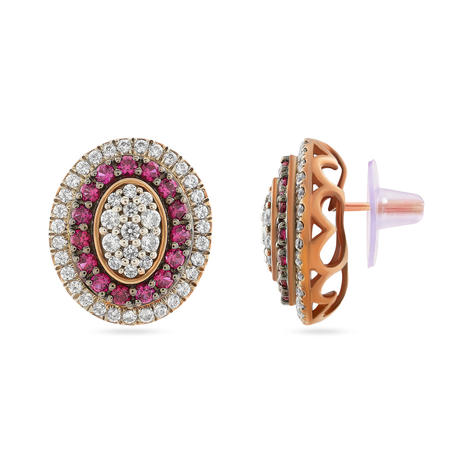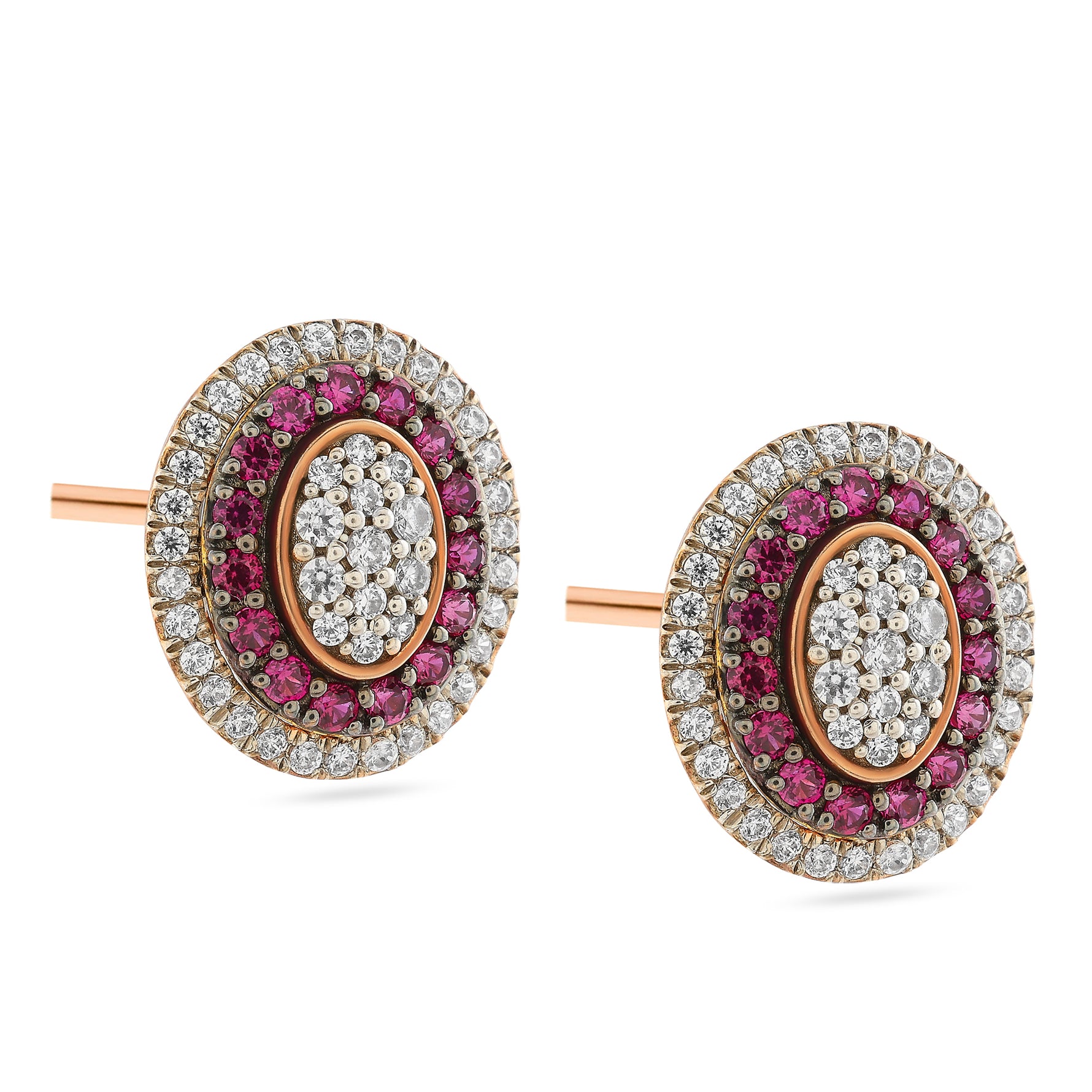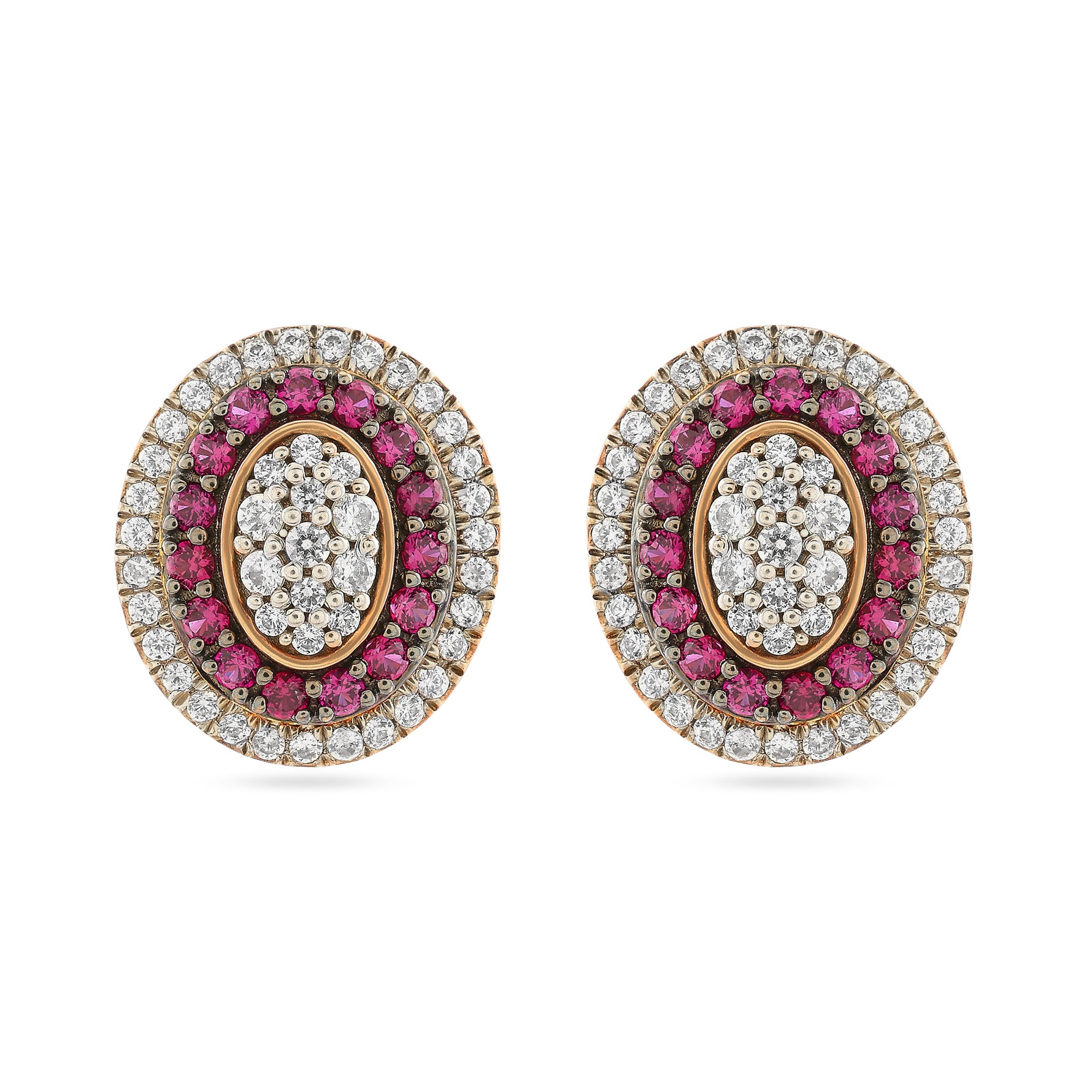 These sophisticated oval stud earrings showcase a timeless double halo design, blending classic charm with modern luxury. A vibrant inner halo of gemstones encircles a brilliant pave-set center, while a shimmering outer border adds undeniable radiance. Perfectly sized for versatile wear, they elevate any look from office to evening.