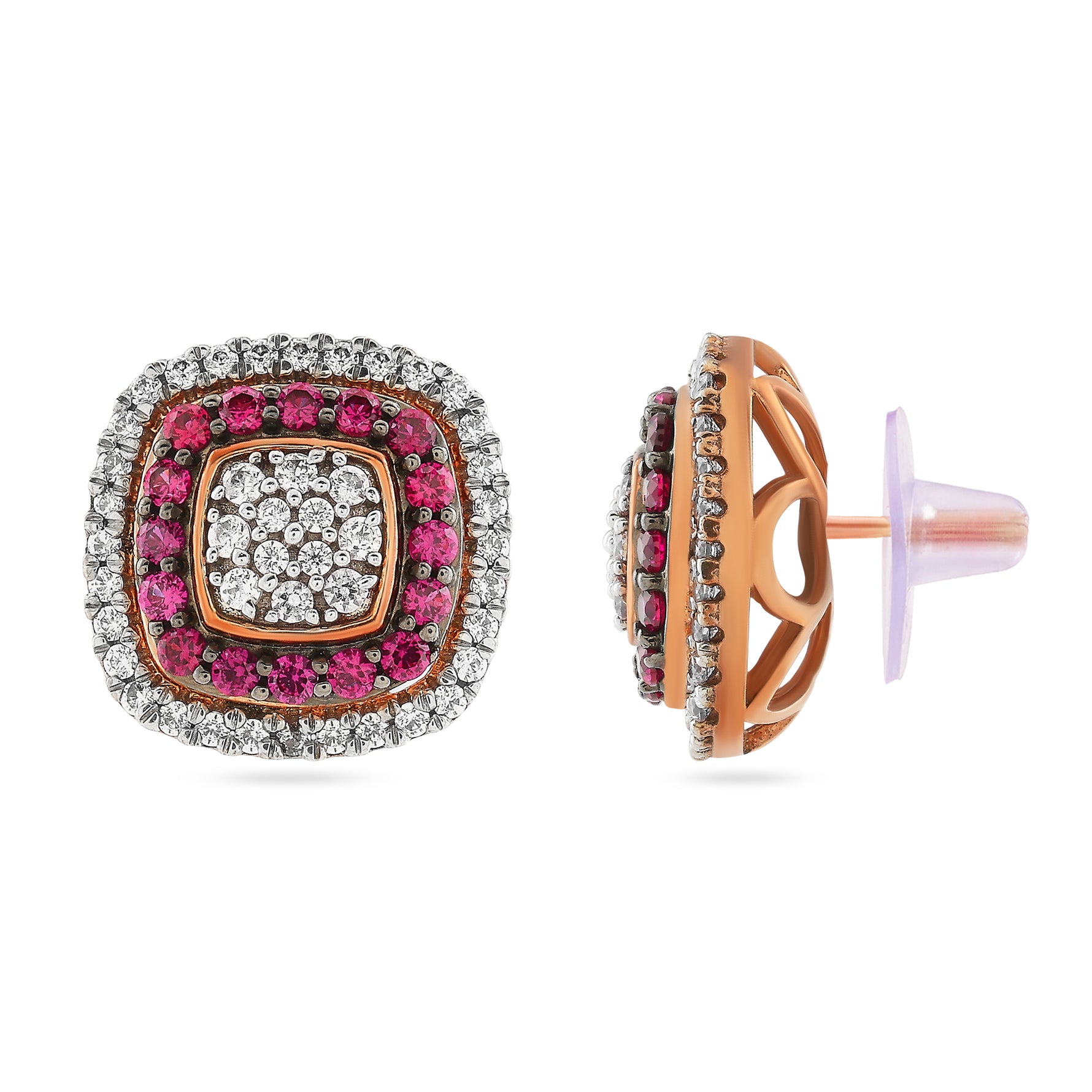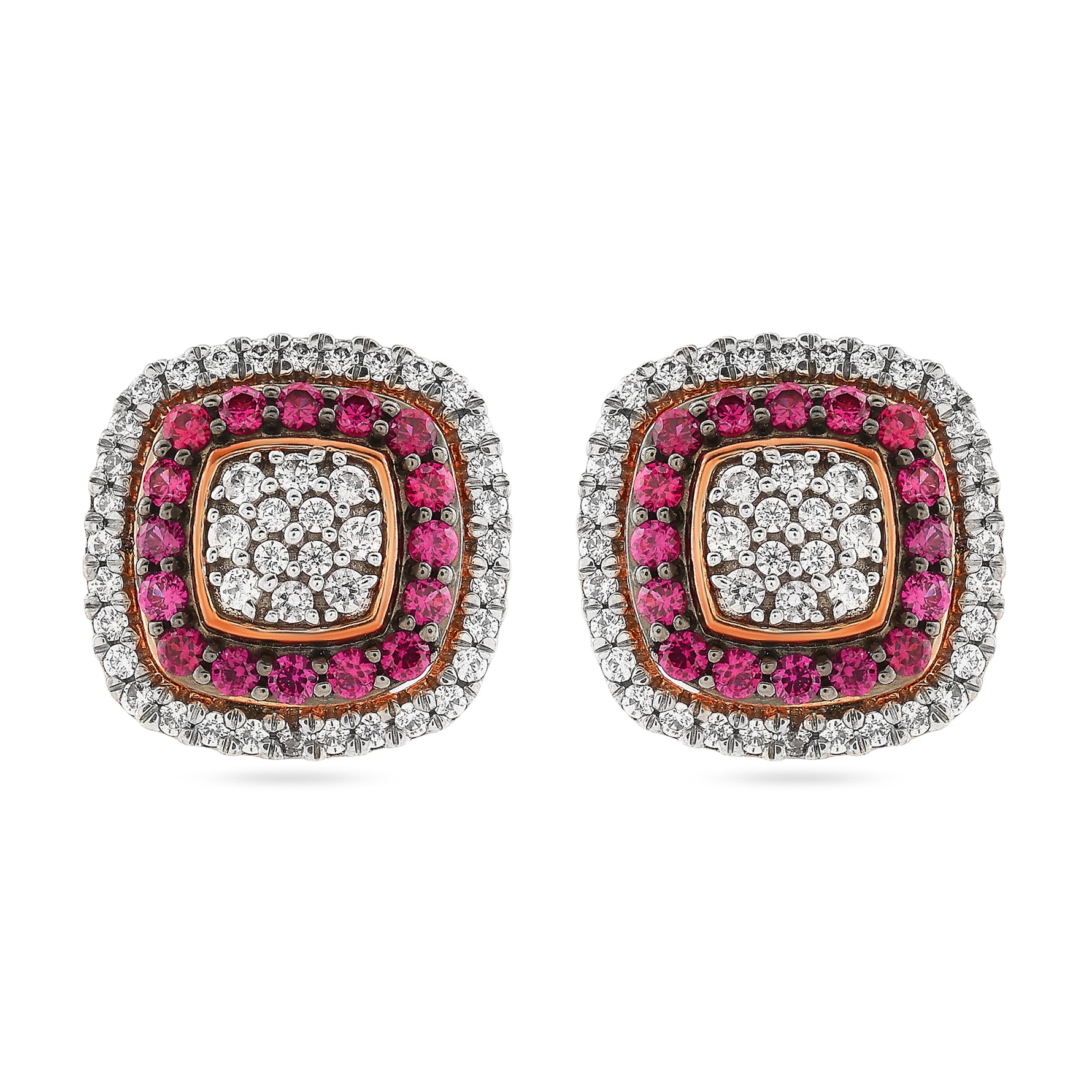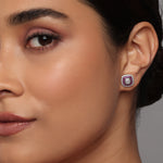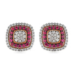Elegant Radiant Cushion Stud Earrings With Exquisite Double Halo Setting