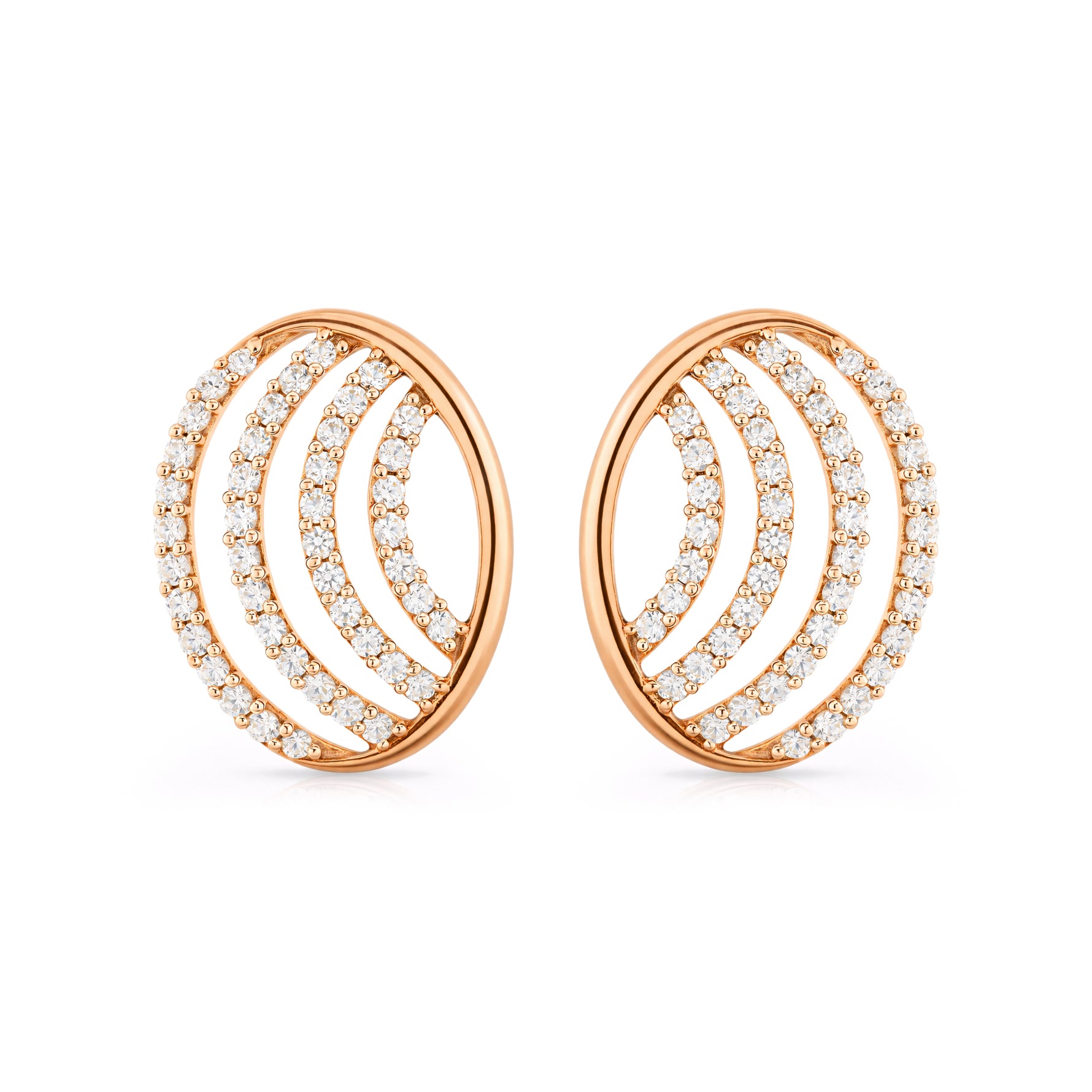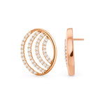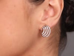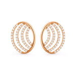 These contemporary stud earrings feature layered crescent waves framed in a sleek oval silhouette, creating depth and graceful movement. Designed for refined versatility, they offer a balanced blend of modern structure and soft curves. Perfect for everyday wear, office styling, or celebratory occasions with understated sophistication.