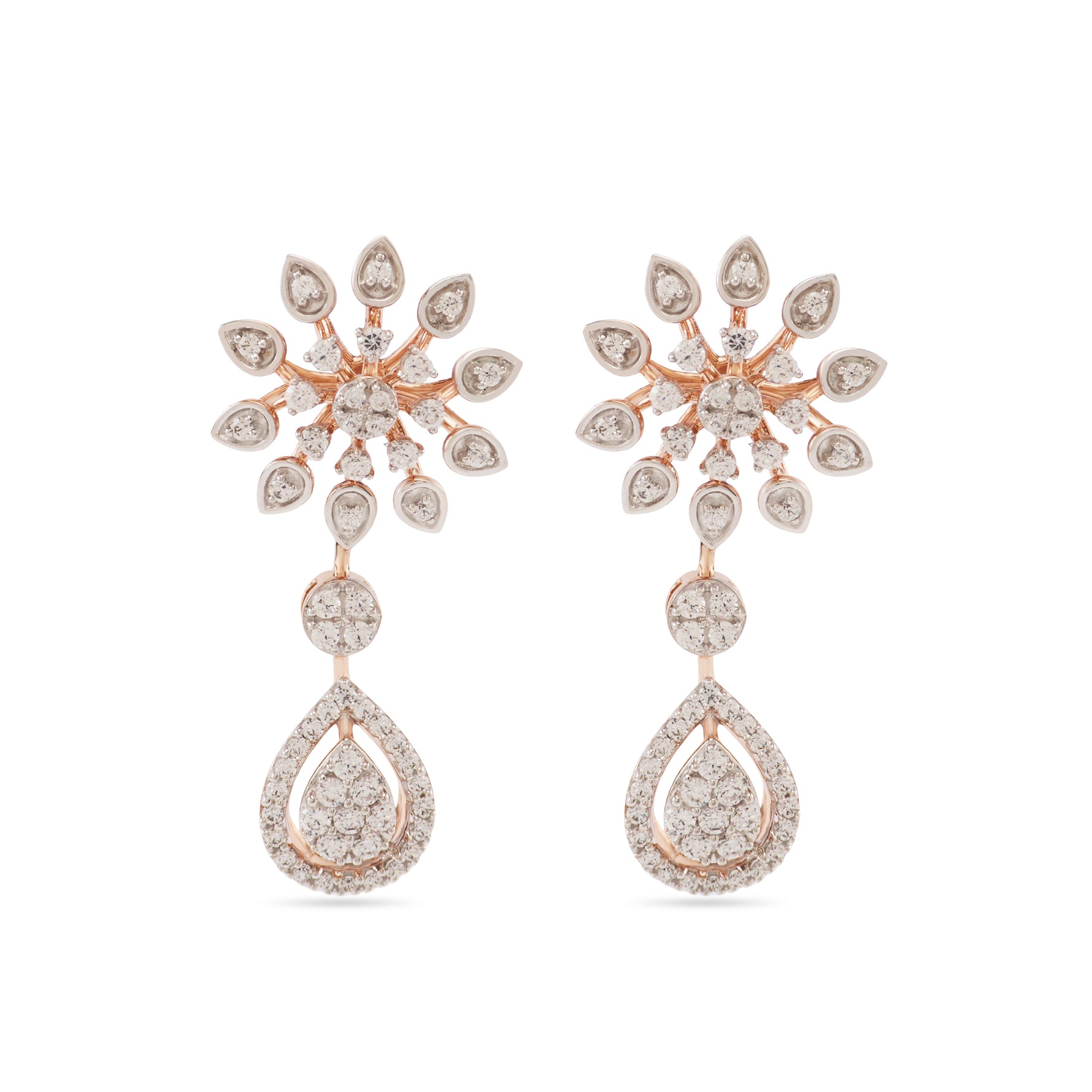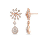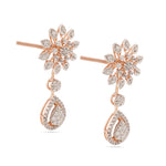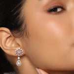These elegant earrings feature delicate floral motifs paired with teardrop dangles, creating a perfect balance of grace and sparkle. Ideal for weddings, parties, or festive occasions, they exude timeless beauty and refined craftsmanship, adding sophistication to any ensemble.