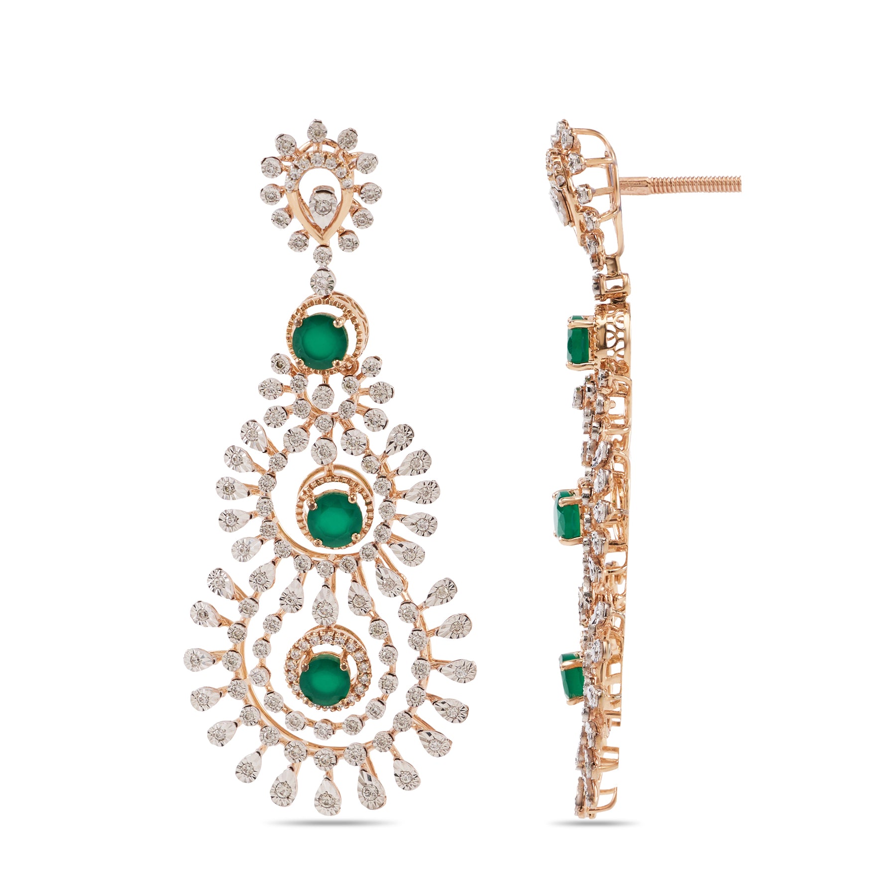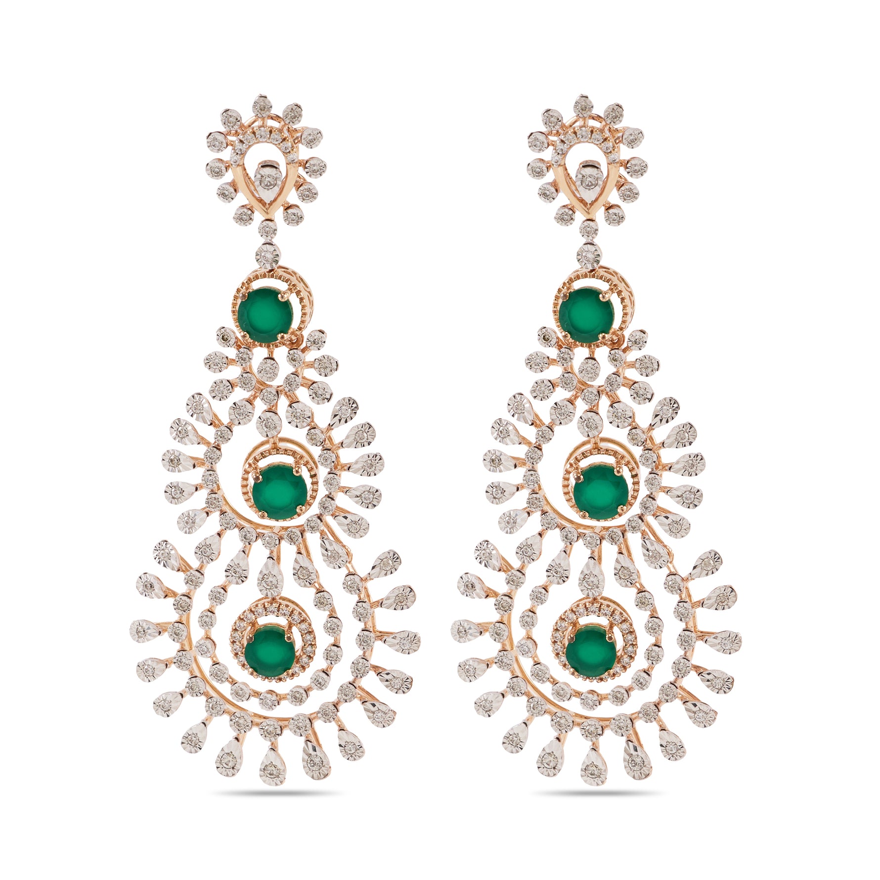 Elegant Triple Halo Drop Earrings with Intricate Detailing
