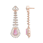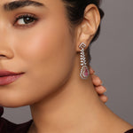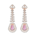These elegant elongated drop earrings feature a radiant teardrop motif surrounded by intricate detailing. Perfect for weddings, festive occasions, or formal events, they exude timeless sophistication and refined craftsmanship, adding a touch of graceful charm to any elegant ensemble.