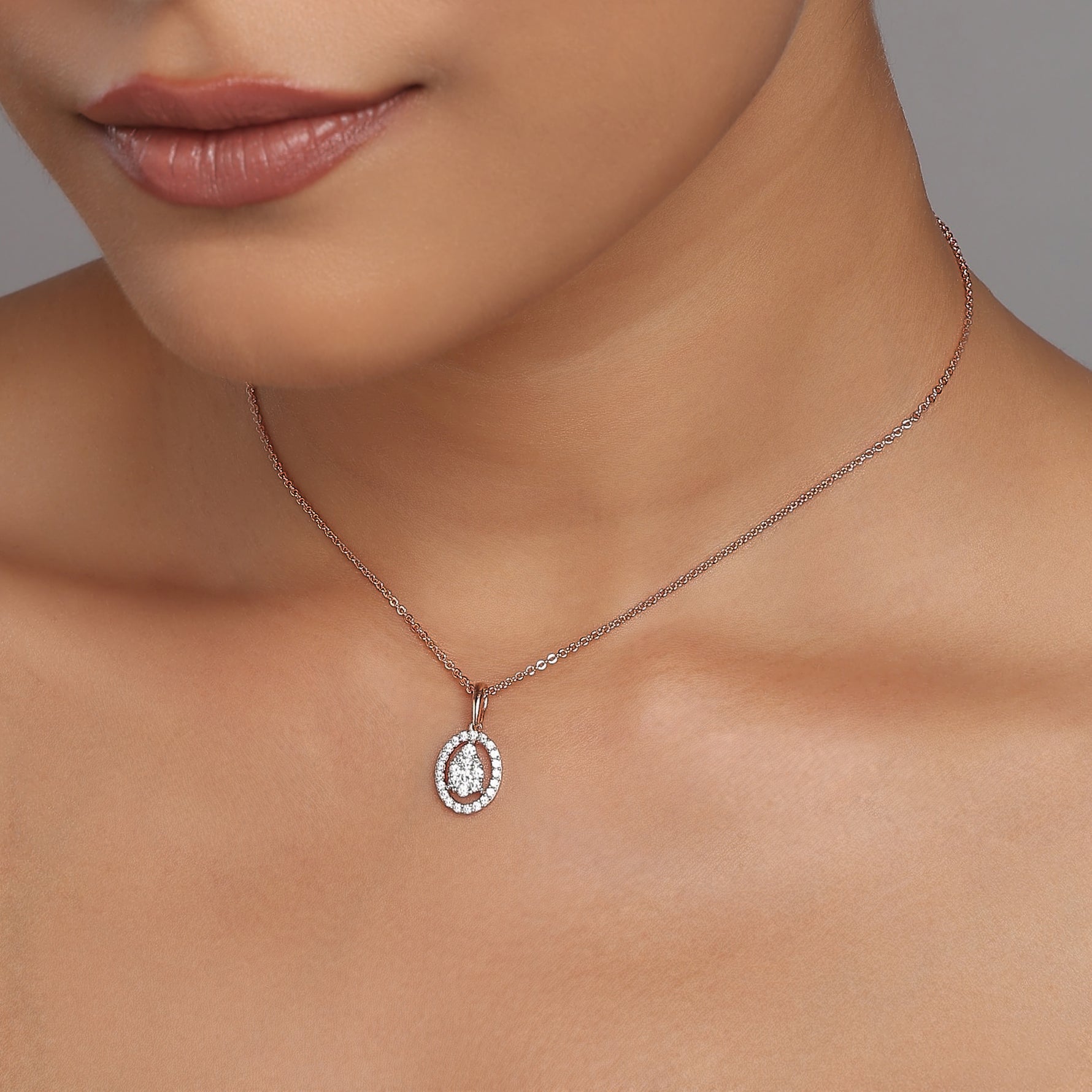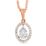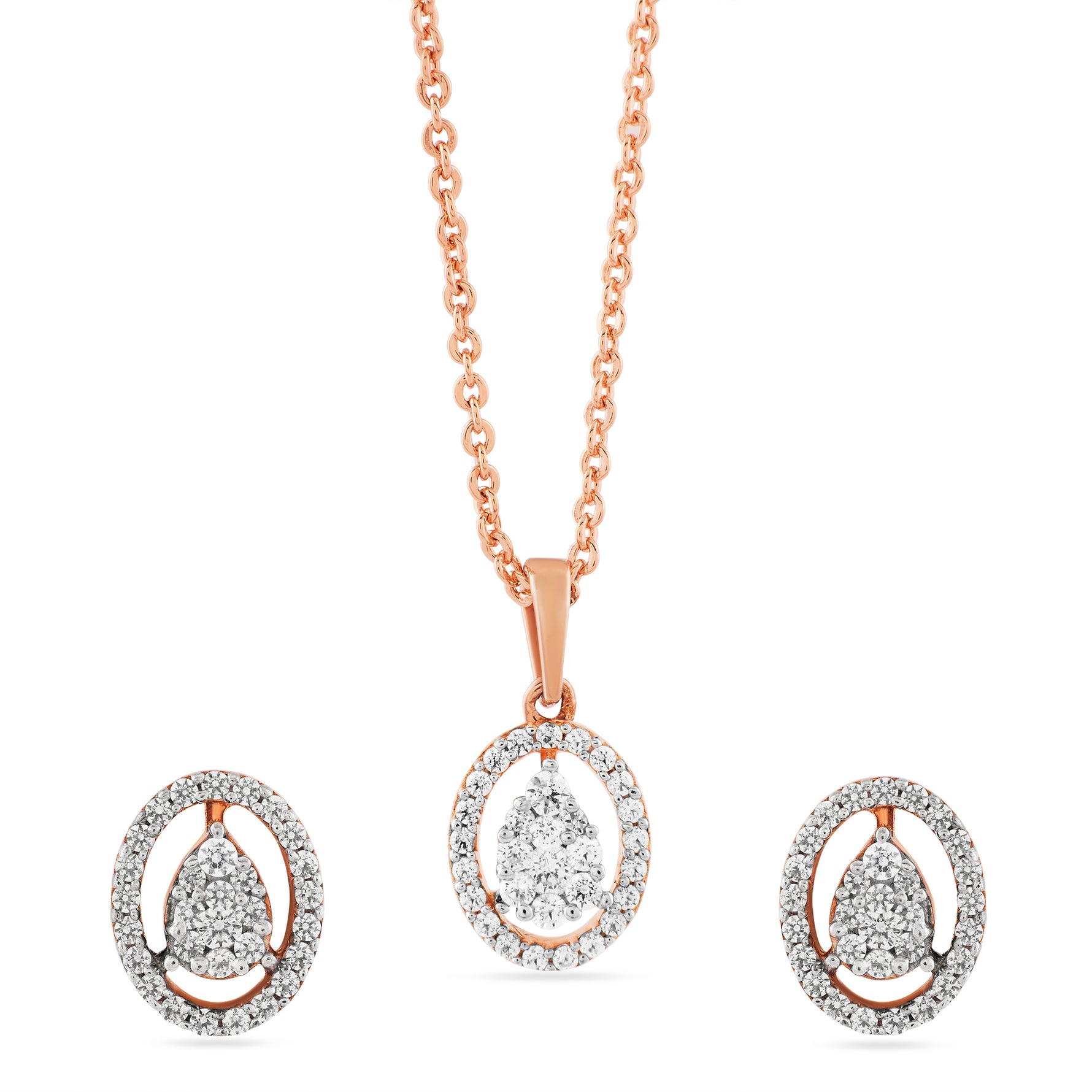 This sophisticated jewelry set features a refined pear-shaped cluster design, artfully suspended within a polished oval halo. The matching stud earrings mirror this graceful aesthetic, offering a cohesive and timeless look. Perfect for adding a touch of brilliance to bridal attire, formal evenings, or elevated daily office wear.